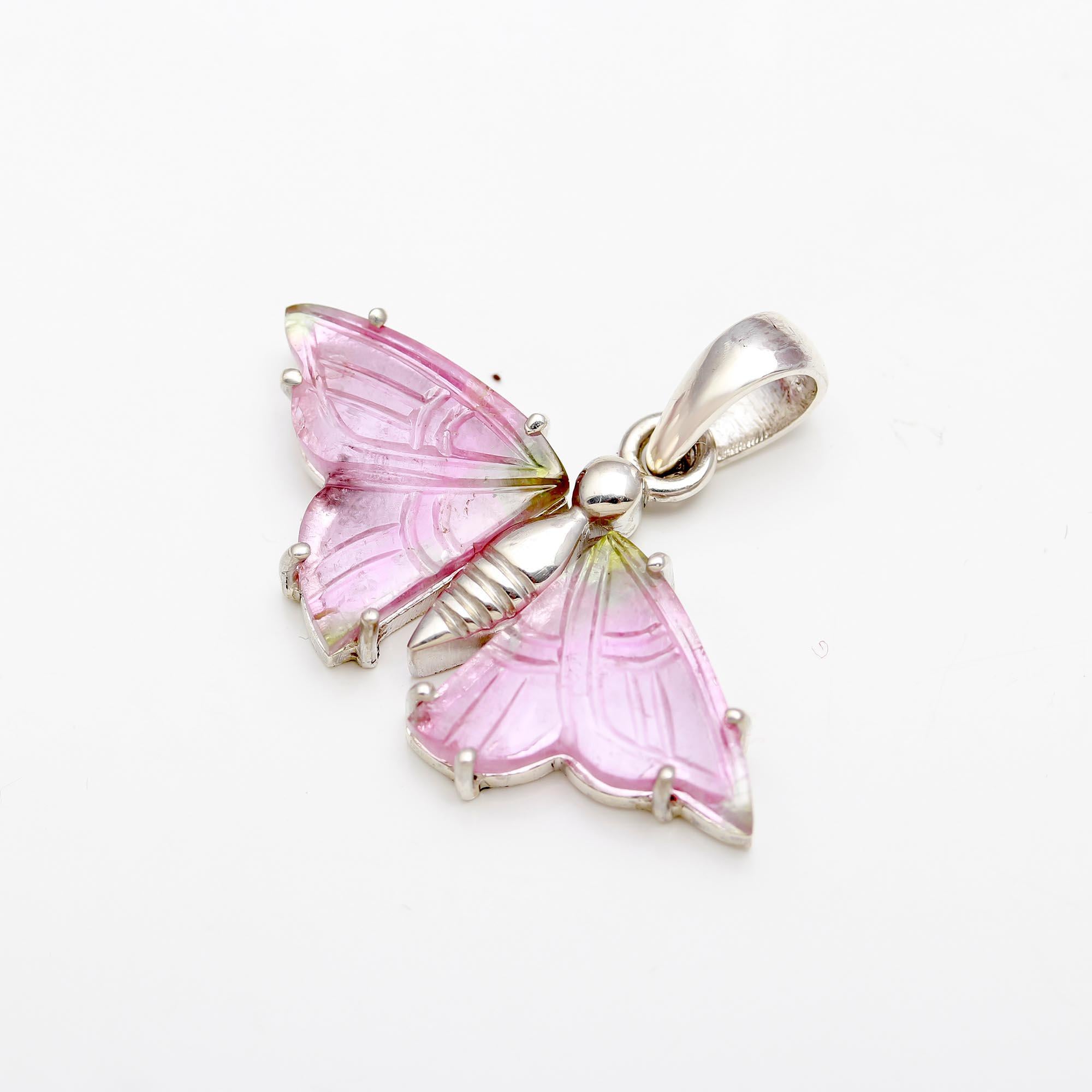 Delicately handcrafted, this small butterfly pendant brings a refreshing twist to the classic butterfly design with a more angular, pointed wing silhouette.